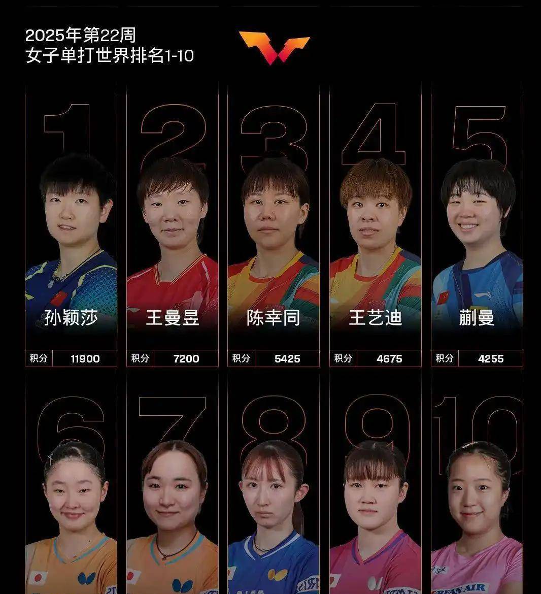 更残酷的是,日本女乒前三主力早田希娜、张本美和、伊藤美诚的积分总和,竟不及她一人。