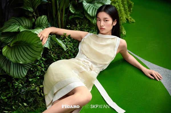 忽然降临在一片都市绿洲中央,轻薄的丝绸连衣裙随着身体起伏,流动成林间薄雾的形态。衣摆沾着露水,春日气息在前所未有的轻快感中盈润起来。